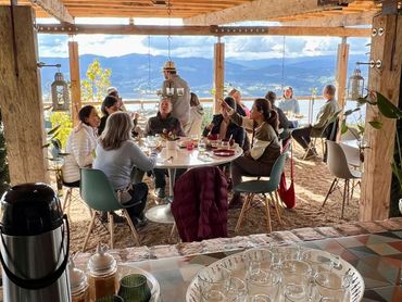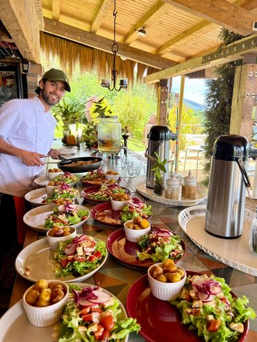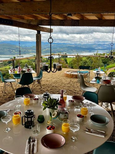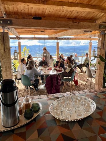 La Terraza Australis es un espacio cubierto y al aire libre, rodeado de naturaleza, ideal para eventos empresariales, meditación contemplativa, yoga, cumpleaños y matrimonios pequeños. Ofrece un ambiente tranquilo y acogedor que invita a celebrar amor, conexión y conciencia